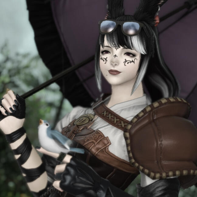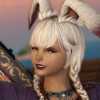 While she may have been conceived in the union between Warrior of Light and Witch of Doma, Aoibheann is by her own admission a relatively uninteresting person with banal hobbies - birdwatching, coin collecting, photography and painting.Aoibheann possesses keen emotional intelligence, a sharp wit, surprising charisma and a flair for the poetic, but her soul is eternally smothered by an isolative melancholy brought on by years of having her autism accepted by her peers and family, but never understood.Two years prior to the Third Promise landing in Sharlayan, Aoibheann's mother Ubi died of natural causes and sent her spiralling the seemingly endless path of grief. While she no longer self-isolates in her room 23 hours a day, everyone who comes into contact with her is keenly aware that her isolationist tendencies and perpetually glum expression have only intensified.Regardless of her antisocial qualities, Aoibheann is beloved by the few who know her on a personal level so fiercely that they would likely rescue her over their own family if the need arised. As her mothers told her that any close family friend was an aunt or uncle, her extended family is massive and they dote on Aoibheann whenever she visits. Her surviving mum especially would crush the moon underheel if it were bothering her.While she hasn't done the job in over two years as of Dawntrail's beginning, Aoibheann is one of the few adults members of the Postmoogle service and has a decorated service record - as well as two medals. She takes this very seriously, and jokes about it are an express ticket to her badside.Under any ordinary circumstances, Aoibheann would've refused the trip to Tural. She is a sedentary soul who finds new places overwhelming. Unfortuntely for her misery, Firhu's impassioned plea to 'just try it' and 'get some time away from your grief' worked. She boards the ship with Firhu, Gomi, Yinde, Nakhu, Wuk Lamat and Erenville.If it's not immediately obvious: Yes, she's a virgin.